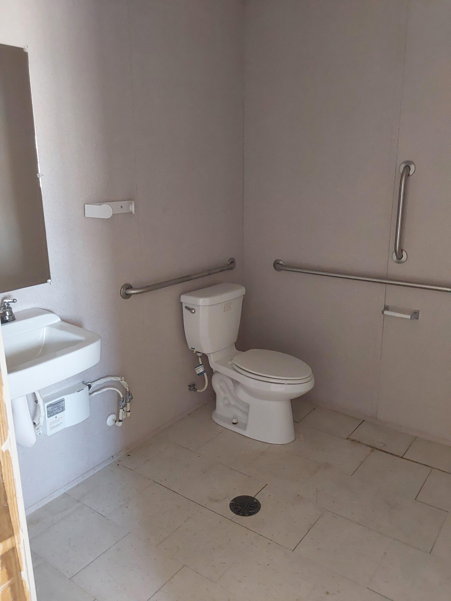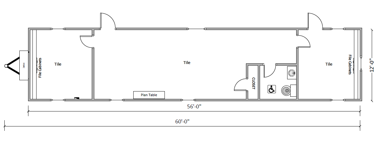 This 12 x 60 Mobile Office Trailer from Satellite Shelters, Houston has two private offices and one restroom.
