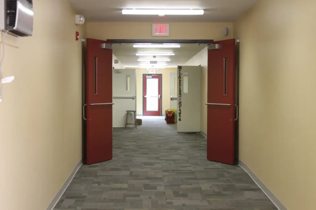 Satellite’s design team worked with the school district’s architectural and engineering firm to create a design for a 110′ connecting link from the school to the portable classrooms. The connecting link was complete with carpeting, heating and A/C, lockers, fire alarms and built to ADA compliance.