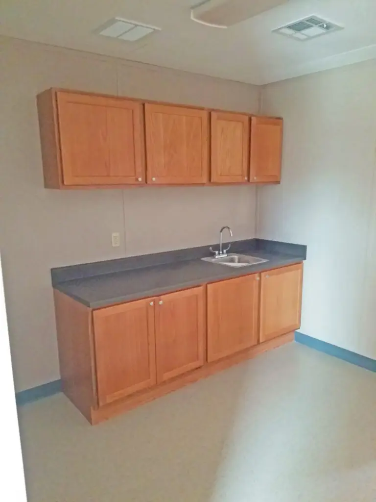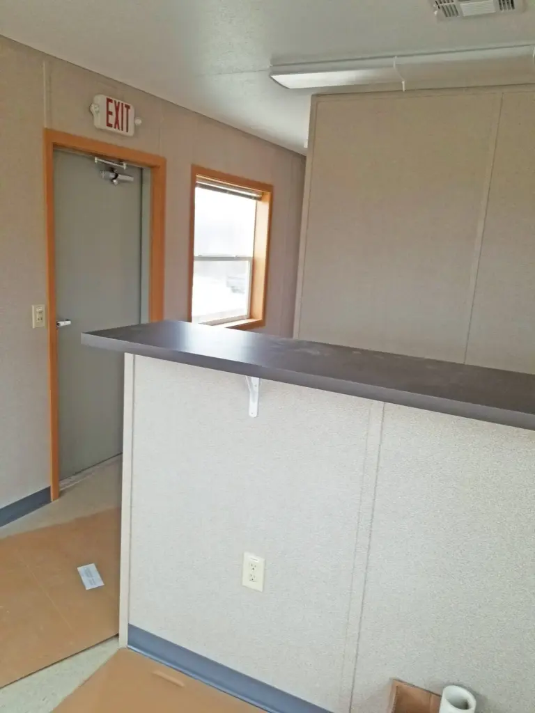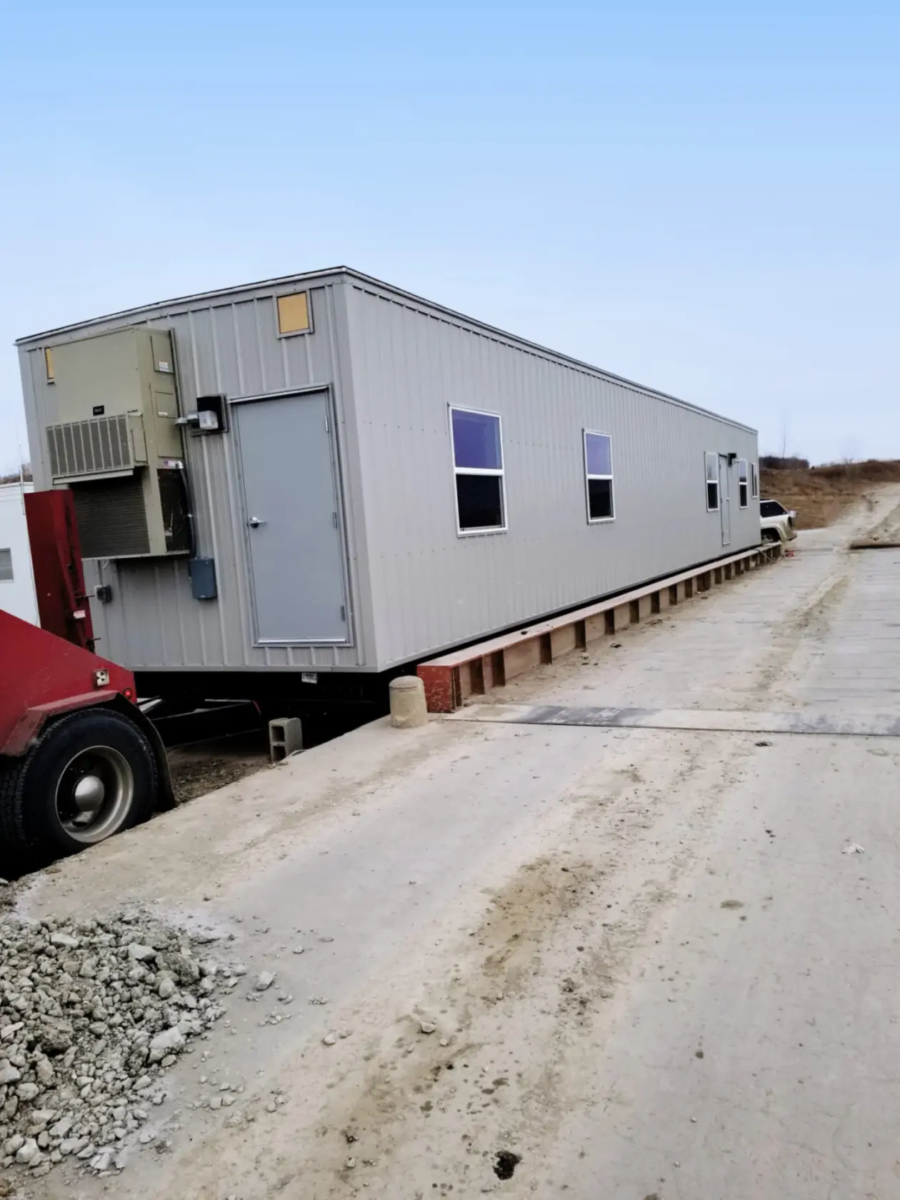 The new scale house building helps to support administrative staff and managers. Satellite was able to add two private offices, a break room / kitchenette, ADA compliant restroom and a storage closet to the building. Additionally, the customer needed horizontal sliding windows added to both sides of the building for employees to easily communicate with drivers parked outside on the scales. A custom building from Satellite Shelters was able to check all the boxes this company needed for their new building so they could continue to serve their customers in a safe, functional environment.